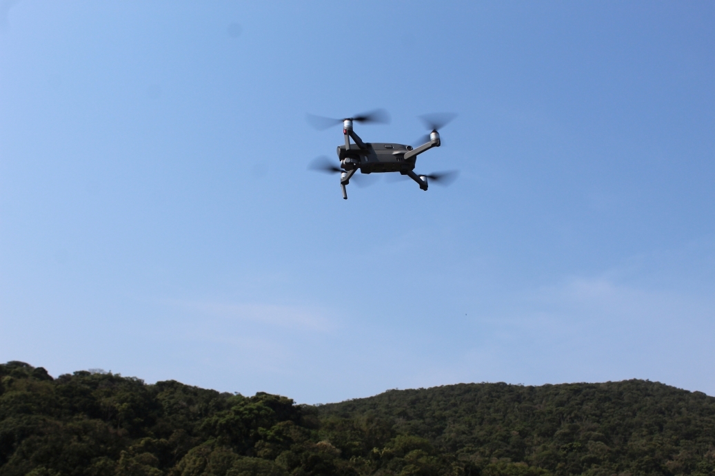 Aeronave permite sobrevoo da Serra do Mar em seus limites com o Observatório, alcançando uma distância de até 1.500 metros e uma altura de 120 metros. Fotografia: Acervo do OO