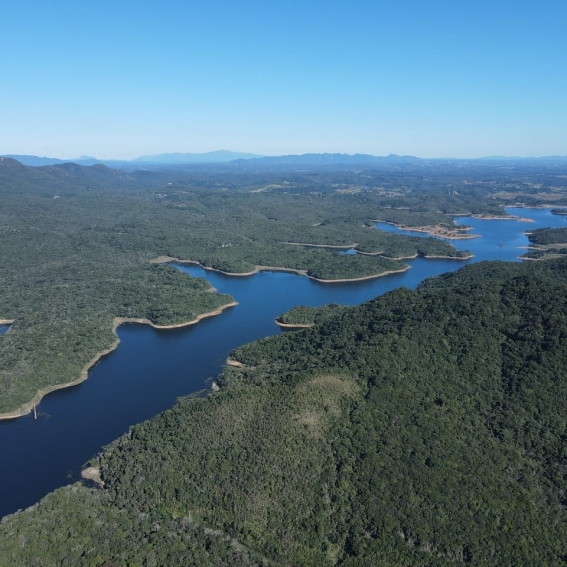 Barragem Piraquara I e, ao fundo, Serra do Quriri na divisa entre Paraná e Santa Catarina. Fotografia: Zig Koch
