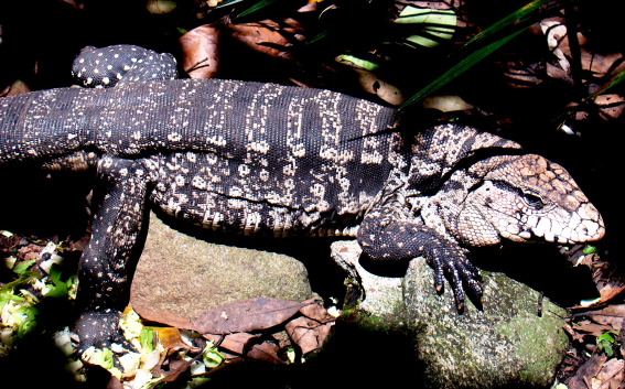 Em trabalho expedito de levantamento de ocorrência de espécies de répteis no Observatório Ornitológico, conduzido em janeiro de 2024, foi possível estimar que quase 70 espécies desta classe de animais podem ocorrer nas áreas da Reserva Natural [8]. Exemplos dessas espécies são o Teiú (Salvator merianae), lagarto de hábito diurno facilmente avistável, e um conjunto de serpentes como a Cobra-cipó-verde (Chironius bicarinatus) e um tipo de Cobra-coral-verdadeira (Micrurus altirostris). O relatório desse levantamento pode ser lido neste link, e fotografias de algumas espécies que ocorrem no Observatório podem ser visualizadas na galeria de répteis.