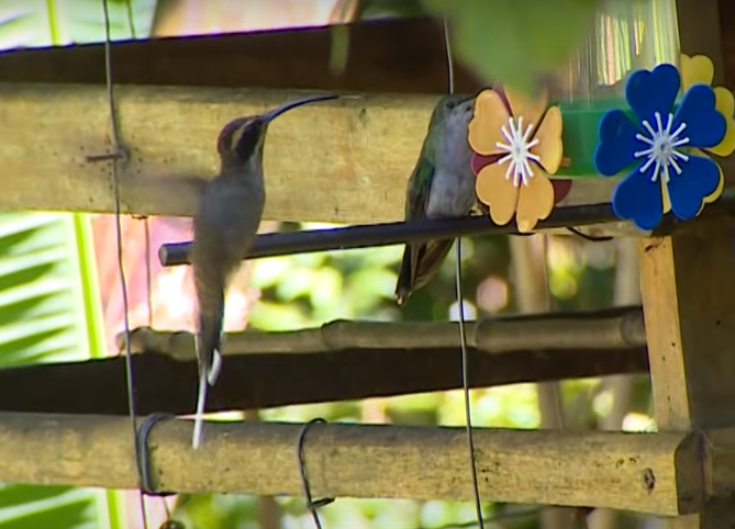 Dentre as imagens exibidas, há registros de aves nativas da área, incluindo uma filmagem do beija-flor Rabo-branco-de-garganta-rajada (Phaethornis eurynome), um dos maiores beija-flores da Mata Atlântica — veja acima.